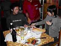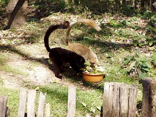 | 上の写真のように小屋の中にいたこの夫婦は、我々を喜ばせようとしたのか、降りてきて仲よく食事を始めた。 | |