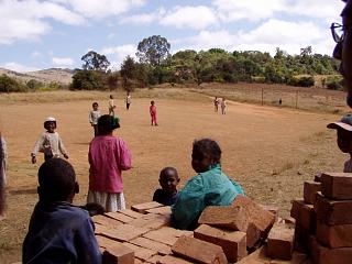 | 帰宅しようとするところ。 2人の子供がゴム草履をはいていた以外、みんな裸足だった。田舎では、大人でも裸足が普通。アンタナナリボでも、裸足の人がいる。 |