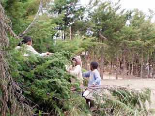 | 木に乗り、それを揺らして遊ぶ子供たち。 | |