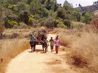 | 牛車は、マダガスカルで一般的な荷物運搬手段であり、アンタナナリボでも見られる。 | |