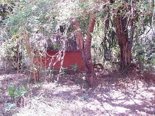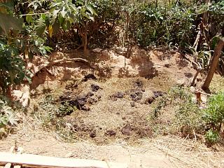 | 村の人たちが長谷川さんのために作ってくれた半分トイレ、半分が水浴び場の建物。(村の人の水浴び場は川。) | |