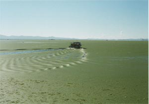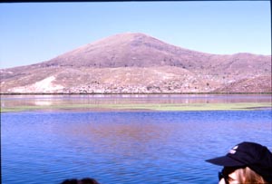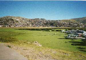 ![]() 汚水が無処理で流れ込み、栄養塩類が 蓄積したPuno湾は、水草で覆われていた。 The untreated waste water had made the water of Puno Bay rich in nutrients to grow water plants to cover the whole water surface. |