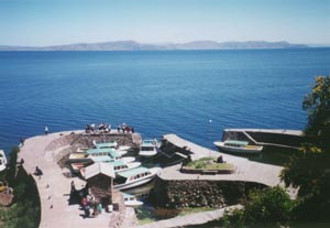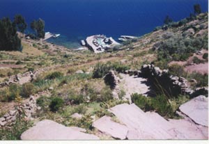 ![]() Taquile島の港。この島のコミュニティーは団結していて、 観光客は、桟橋に着くと、まず清掃協力金を支払う。 この島では、数件あるレストランでも、統一価格。 この島のレストランのミント・ティーは、ミントの 香りのする灌木の枝をお湯に入れたもの。 The port of the Isla Taquile. Tourists must pay environmental conservation fee at the port. The well orgnized and disciplined community of this island set fixed prices even at the restaurants in the island. (The mint tea here is made with a small twig from a shrub which smells like mint. |