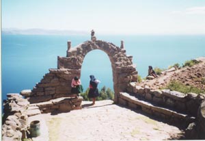 プーノ発8:30。タキーレ島では、当番制の民泊で5ソル。集落は島の丘の上。島内を徒歩で1周。 Departure at 8:30 from Puno. In Isla Taquile, villagers who live on the hills provide accommodation to visitors at their homes. A visitor center above the port on the hill assigns such accommodations. A round trip in the island was made. |