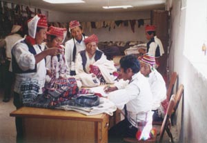 ![]() この島では、編み物は男性の仕事。歩きながらでも 編み物をしている。それぞれの作品を持ち込み、 整理番号をつけてもらい、それが売れた時に収入に なる様子。民泊先でも、そこの主人が、自分のものを 買うようにと勧める。共同販売所では手数料を 取られるために、直売したいということもあろう。 また、いろいろ工夫し、努力して作った自分の作品に 自信と誇りをを持っていて、売れるのが楽しみな様子。 It is men who knits. They are always knitting hard even in walking. They have now brought their products to the shop so that each product is given a number tag special to each person so that the producer receives money when the product has been sold. |