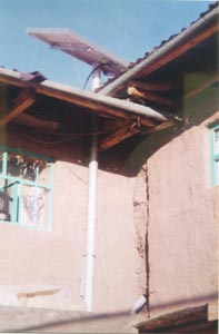 ![]() 少なからぬ家では、このように太陽光発電パネルを 持っていた。私の民泊先でも、その電力を利用して、 1日中ラジオをつけ、また、夜は、居間で蛍光灯を こうこうとともしていた。編み物や民泊で得た現金収入 がその背景にあると思われる。 Not a small number of families have such a solar panel. My host family also had one, which allowed their radio listened to all day and their florescent light to shine at night. |