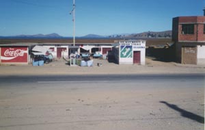 ![]() ラパス始発のソラタ行バスに乗り換えるためのHuarinaのバス停で Huarina for transfer to a bus for Sorata coming from La Paz |