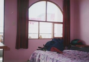 コパカバーナ発7:00のラパス行バスに乗る。途中、Tiquinaでバスごと渡し船に乗ってチチカカ湖を渡る。Huarinaで、ラパス発ソラタ行のバスに乗り換え。アチャカチから先は未舗装。そこで軍の検問所に行って入境手続き。スペイン語ができないため、同じバスの欧米人の若者に助けを求める。途中、アンデスの山がきれい。 ソラタでは、中庭を囲んだこぎれいな部屋に電気温水器もついたHotel el Paraiso泊。30ボリビアーノ。この宿の唯一の欠点は、朝が遅いこと。出発の日には、たたき起こして門の鍵を開けてもらうのに苦労。 小さな町だが、地域の中心なので、多くの人が買い物に集まる。市場の2階のレストランなどはお勧め。米ドルの両替をしてくれる商店があるが、レートが悪いので、できる限り、ここに来る前に両替を。 My bus for La Paz departed Copacabana at 7:00. It crossed a channel in Lake Titicaca on a small ferry boat on the way at Tiqunan. At Huarina, I took a bus for Soratra coming from La Paz. On the way, at Achacachi, we must stop at a military police check point with a passport. Because I did not understand Spanish, I requested help to a Europen youth for the procedure. The Andean mountains were beautiful on the way. Accommodation in Sorata was at Hotel el Paraiso at 30 Bolivianos. It is a comfortable hotel with spacious rooms around a courtyard and with hot water. One problem with this hotel was that they get up very late in the morning. It took time to wake them up to have them open the gate on my departure day. Although the twon of Sora itself is small, may people come from villages for shopping etc. A restaurant upstairs in the main market may be recommended. Although one or two shops may exchange US dollar, the exchange rate is not at all good. Therefore visitors should change money before coming here. |