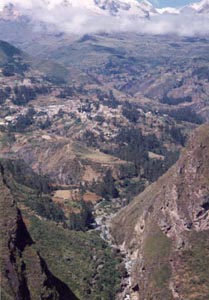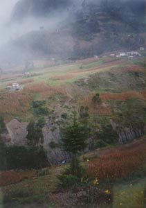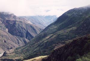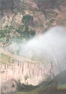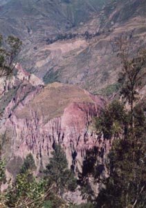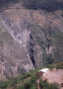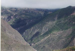 ![]() サン・ペドロに向かう途中の谷の対岸の 集落に通じる細いつづら折れの道。 A zigzagged footpath to communities on the other side of the gorge seen on the way to San Pedro. |