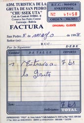 ![]() サン・ペドロ洞窟入場料領収書 Receipt of the entrance fee for the San Pedro Cave |