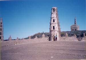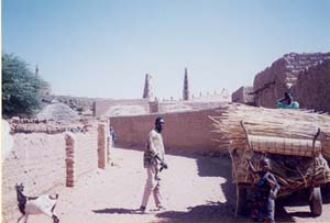 | Bani | この辺りからサヘル地域に入ります。マリの人たちが作ったという泥でできたモスクが、雨の少ないサヘル地域に来たことを実感させます。 This is the first town in the Sahel when we go northeast. A mosque made of mud which is said to be constructed by Malians informs us that we are now in the arid Sahel. |