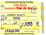 ![]() プエルト・モンからチロエ島へのバスの切符 Bus ticket for Castro, Chiloe Island |