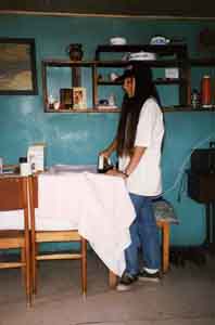 ![]() 村の小学校の教師のマルセーラは、毎晩ベラ家に来て、 英語を教えてくれと言った。中央にあるストーブは、 オーブンにもなっていて、奥さんは、2−3日に1回、 そこで香ばしいパンを焼いた。 Marcela, a teacher of the school of the village, came to Vera's every day and asked me to teach English. In the center is a stove where the wife baked good bread every two or three days. |