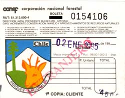 ![]() 国立公園入園料領収書 Receipt for the entrance fee to the National Park |