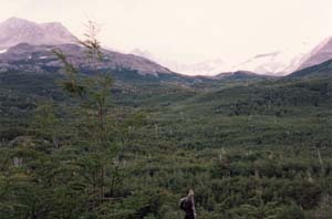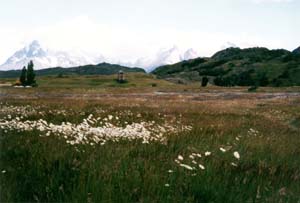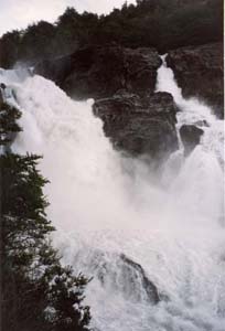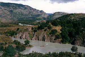 ![]() グレイ湖への途中のグレイ川。氷河に削られた岩の粉で、 水は青灰色に濁っている。 Rio Grey on the way to Lake Grey |