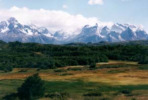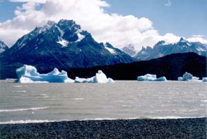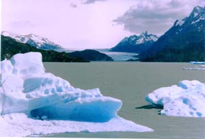 トレス・デル・パイネ国立公園 まず、近くの風景を楽しんだ後、Grey湖の岸辺に行き、対岸の氷河と打ち寄せられた氷の塊とを楽しむ。続いて、徒歩で、Cascada Pingo (ピンゴの滝)まで往復。 Torres del Paine National Park After enjoying the scenery in the vicinity of my hostel, I went the coast of Lake Grey, where I could enjoy a glocier on the opposite side and the floating ice blocks blown from the glacier. Next, I trecked to the Cascada Pingo. |