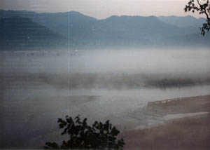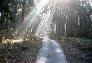 ![]() 同じロッジの隣の部屋に止まっていた写真家のシンさんの お気に入りの、林内に差し込む朝の光。 The morining light which photographer Singh likes. |