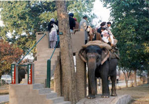 ![]() ゾウによる園内周遊は、朝早く始まります。要予約。 In an early morning, elephant trip in the Park starts. Reservation in required. |