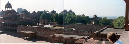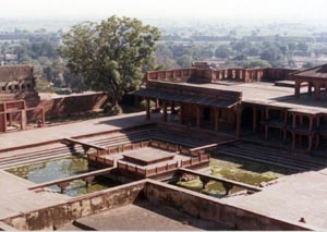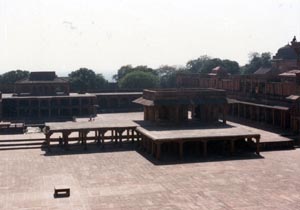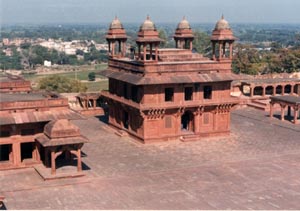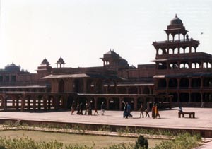 ![]() 1575−88年にアクバル帝の首都として建設された ファテプル・シキリ。その後、水がないために放棄された。 Fatehpur Sikiri (1575-88: Akbal's captital) |