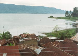![]() ホテルの屋上から見たトバ湖。 Lake Toba seen from the roof of my hotel. |