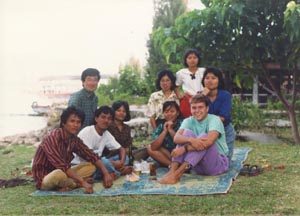 ![]() 宿のところに遊びに来ていたインドネシアの人たちと 同宿のカナダの学生 Indonesian picnickers and a Canadian student staying with me. |