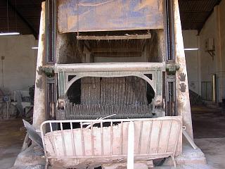 原石を多数の薄い板に切り取る機械 A raw stone is cut into many plates with this machine. |