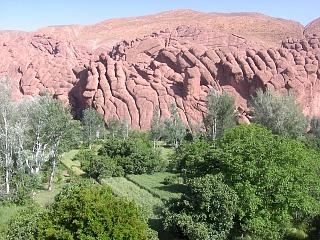 Up to Ait Oudinar, the road was not only narrow but was really bad. It was paved but numerous potholes made it worse than unpaved. It was rather strange, after Ait Oudinar, the road was perfectly paved with no potholes and had two lanes. The bottom of the Gorge was cultivated with good irrigation systems, which was quite a contrast to the mountain slopes which hardly had vegetation.