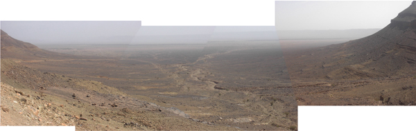 ![]() ドゥラー川対岸から見たムハミドの集落。ドゥラー川は、ダーデス峡谷からワルザザート、ザゴラ、ムハミドを経て、大西洋まで延々と続く。しかし、流れが大西洋までとぎれることなく続くのは、流域に十分な降水のあった時だけで、前回大西洋まで流れが繋がったのはかなり前とのこと。 The village of M'hamid from the opposit side of the Oued Draa which flows, if the basin has much precipitation, from Gorges des Dades, through Ouarzazat, Zagora, M'hamid and all the way to the Atlantic Ocean. However, it was long time ago when the basin had sufficient precipitation that allows the river continuous to the Atlantic Ocean. |
