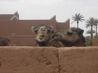 ウラド・ドゥリスで見たラクダたち。こんなとぼけた顔をしていないと、砂漠は乗りきれないのだろう。 Camels seen in Oulad Driss |