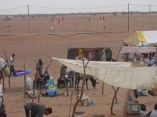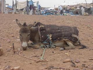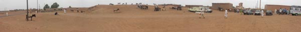 ![]() 道路の終点ムハミドの町の外(手前)の市の外側の駐ロバ場兼駐車場。この日(月曜)はちょうど市の日だった。 Monday on which day I visited was a market day of M'hamid at the end of the road. It was held outside of the town areas immediately before it. |