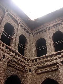 ウラド・ドゥリスのカスバ内で「博物館」として公開されている家の中庭から見上げる。 From the small courtyard of one of the houses that was open to the public as a "museum"in the casbah of Oulad Driss. |