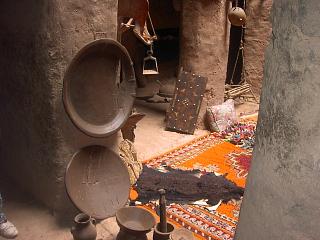帰りは、その直前のヤシの生えるウラド・ドゥリスで止まったところ、村人に声をかけられ、「博物館」として公開しているカスバ内の1軒へ。そこの若者がお茶を入れた後、カスバ内を案内してくれる。最後に「寸志」を渡す。50DHで喜んでくれた。その後、来た道をワルザザートまで戻る。