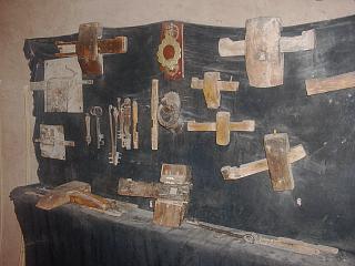 木で作られた伝統的な鍵の展示 Traditional wooden locks |