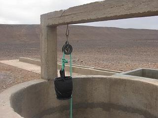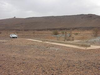 人の居住の気配のない中、ザゴラへに戻る途中の峠の近くにあった井戸。おそらく遊牧民用であろう。 A solitary well near the pass toward Zagora, probably for nomads |