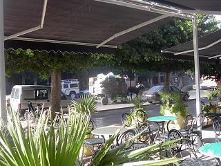 Hotel Faroukの1階のレストランでの朝食。たくさんの野菜を乗せて前の道を市場に向かう馬車が頻繁に通る。朝食のクレープはその場で焼いている。 Breakfast at the restaurant on the first floor of Hotel Farouk. Horse carts with foll loads of vegetable for the market frequently pass by. Crepe was baked in front of us. |
