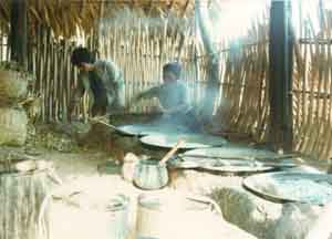 ![]() Huts where sugar in the sap is condensed. 採集した樹液を煮詰める小屋 |