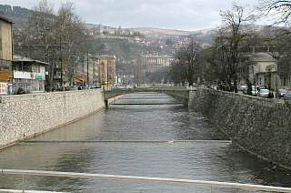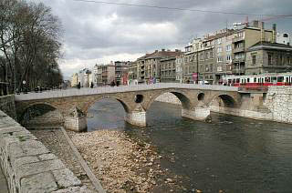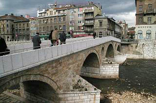 ![]() The bridge, the incident on which triggered the First World War. 第一次世界大戦の引き金となった オーストリア皇太子殺害事件のあった橋 |
