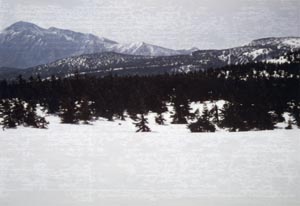 ![]() 嶮岨森から八幡平の茶臼岳を望む。 Chausu Dake of Hachimantai seen from Kenso Mori |
