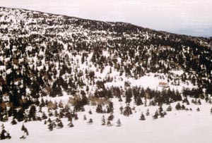 ![]() 三石山から三石小屋 Mitsuishi Goya seen from Mitsuishi Yama |