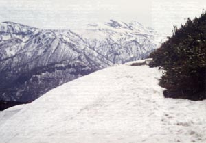 After skiing to O-Numa, the first night was spent at the hut near the top of Hachimantai. On the second day, the original schedule to stay another night on the way was changed because of likely bad weather. Accordingly, most peaks were not reached and skating was the most frequently used way of skiing to Amihari Onsen.