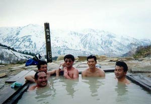 ![]() 2日目の蓮華温泉ロッジ出発時 いつものように経営者の田原さんが撮ってくれる。 Starting Renge Onsen Lodge. Taken by Mr. Tawara, owner of the Lodge, as usual. |