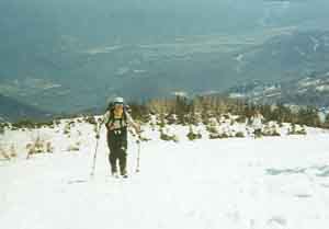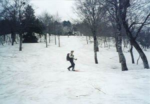 ![]() ワサビ沢にテレマークで下る。 Going down to Wasabi-zawa |