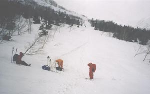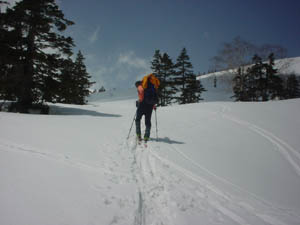 ![]() 角小屋峠からウド川源流に下る。 Descending Kadokoya Pass to Udo River |