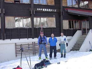 Because we could take the rope way to Tsugaike Marsh, we saved much time this year. In addition, the weather was fine. Therefore we went to Hakuba Norikura Dake from Tenguppara. However, we gave up to go further to Renge Onsen through Hakuba O-ike and Tengu no Niwa because we had no exact information of the course and because we learned that passing through the top of the steep slope to the left of the mountain might not be safe. Accordingly we went back to Tenguppara to go down through Furiko-zawa. (We learned from Mr. Tawara that we should walk on the summer footpath on Hakuba Norikura Dake, on which there was no snow but there might be in early spring.)