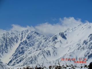 栂池ゴンドラ・栂池ロープウェイの片道切符の購入には 登山届けが必須。切符売り場に登山届けを出す。 栂池ロープウェイから見えた白馬乗鞍岳。 山頂から上がる雪煙で、雪質と風を知る。 To take the Ropeway one way to Tsuga-ike, we must report to the police. But the report can be submitted to the ticket office of the Ropeway. The smoky snow from the summits indicate the quality of the snow and the wind. |