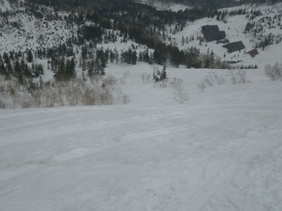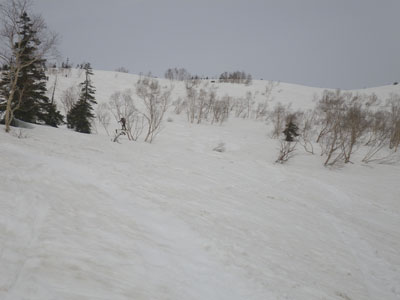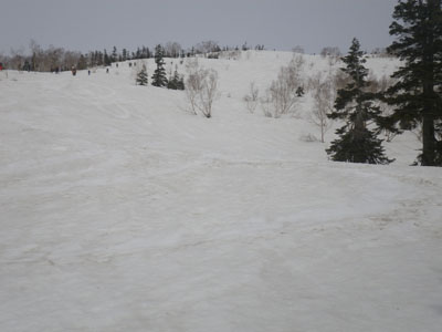 ![]() いつもなら雪に覆われて快適な大斜面。 The slope which is usually cofortably covered with snow. |