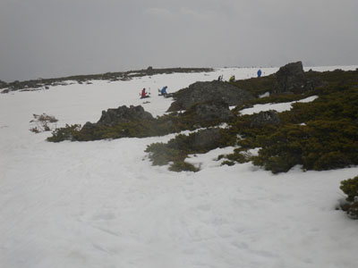![]() 夏道のある尾根の急登終わる頃、左に、いつもは無い雪解け斜面。 In the left, there was a bare ground which we do not see usutally. |