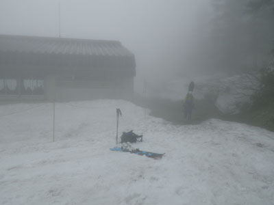 ![]() 栂池ロープウェーの上の駅の横。駅を出たところには雪が無かった。 Next to the upper end of the Tsugaike Ropeway. There was no snow as I went out of the ropeway station. |