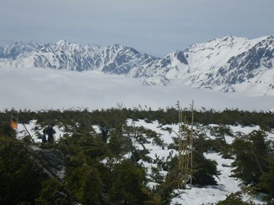 2月下旬の下見情報の内容があたかもゴールデンウィークの状況のようだった極端な少雪の今年は、蓮華温泉も早くから開いたが、案内人が3月下旬まで海外に行っていた。4月になると、研究員たちも、自治会の用事、海外出張、米国への転勤の準備等々で蓮華温泉まで行く時間がとれなかった。そのため、あきらめきれない案内人が、4月10日と24日に栂池から白馬乗鞍岳に日帰りで往復した。