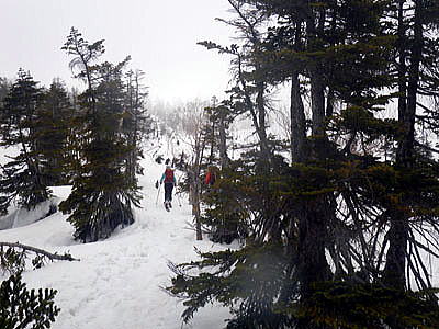 ![]() 夏道のある子尾根を登る。 Climbing the small ridge where summer trail goes up. |